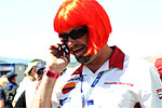 "Dude, I'm by the back of the Repsol garage, I'm wearing a red wig, you can't miss me!"