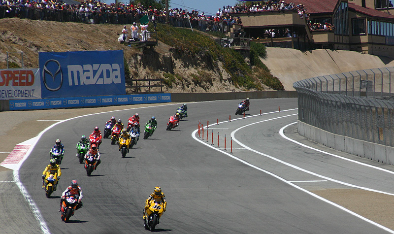 The sighting lap ... the only time that afternoon when Rossi was in front of Hayden.