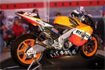 Close-ups of the Honda, Suzuki, and Yamaha MotoGP bikes