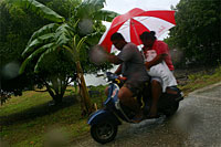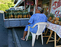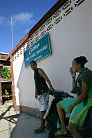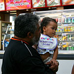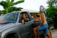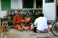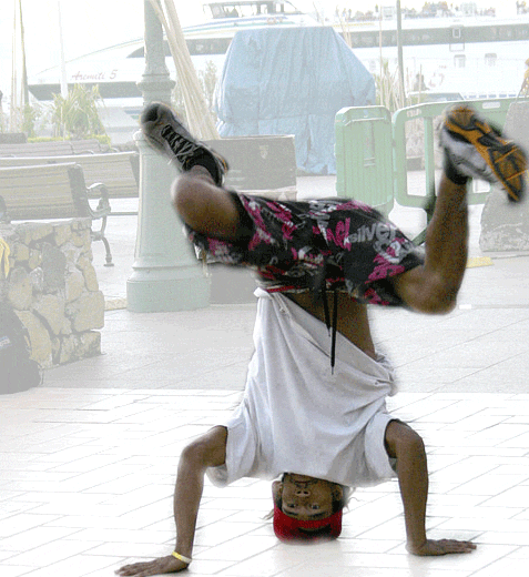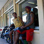 Late afternoon on the docks in Papeete, a break dancing DVD draws a crowd. |