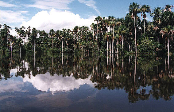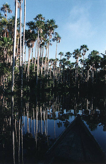 these palms called aguaje which stand in a few feet of water. Their fruits look